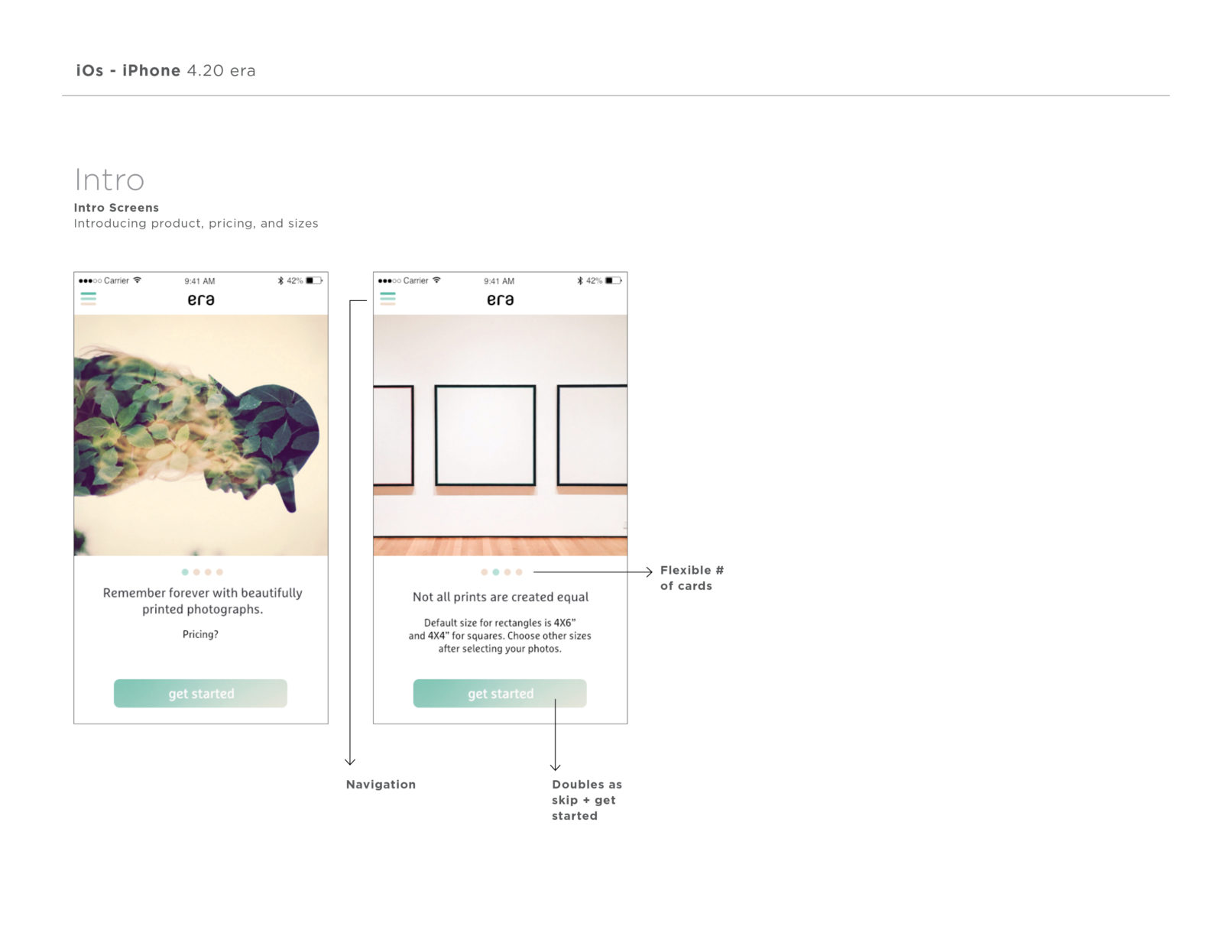 Branding and app design for era. era makes it easy to get all your favorite print formats in a square or rectangular version, each with an option to add a 1/4" white border, starting at $0.39 per print.