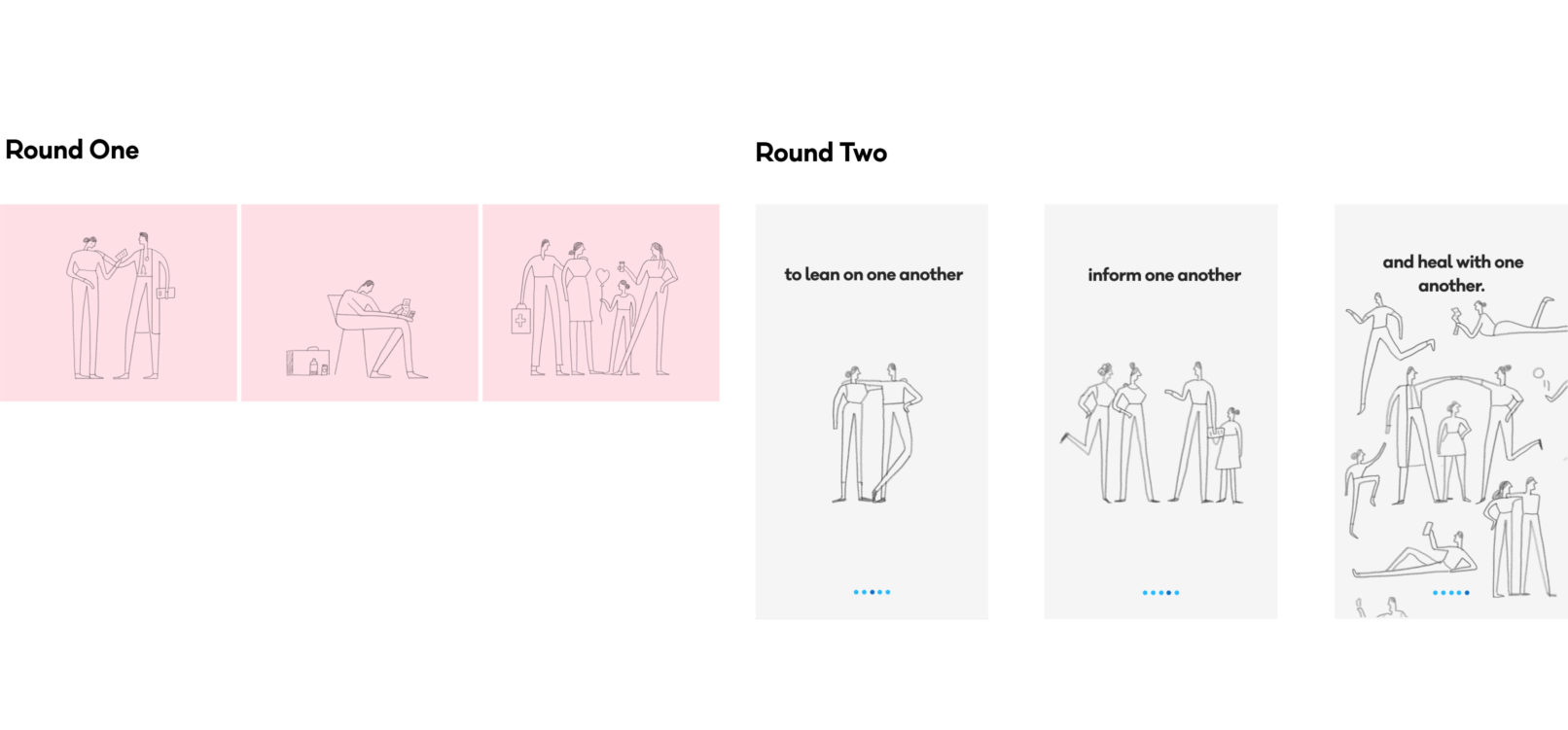 We developed a concept for the identity which nods to communication. The outcome depicts a speech bubble encompassing the wordmark that is inviting. The color exploration below aimed to be both informative and inclusive. We eventually landed on the 3rd color scheme as the blues denoted a seriousness, and the introduction of pastels brought in a lightness.